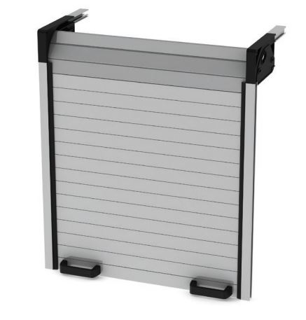 La serranda in alluminio mod. ECO SIMPLY viene assemblata con profili H30 o H38, è realizzata su misura in estrusi in alluminio, con forme e caratteristiche particolari. Questo modello viene utilizzato prevalentemente per chiudere vani porta-materiali di piccole e medie dimensioni, in sostituzione agli scomodi battenti. Viene realizzata su misura ed è anodizzata argento o verniciata Ral 7035. Su richiesta del cliente è disponibile la verniciatura in tutta la gamma dei colori Ral. Il sistema di scorrimento di questo modello di serranda permette di occupare meno spazio possibile all’interno del vano. Difatti la serranda si ripone piatta orizzontalmente sotto il tetto e l’eventuale lunghezza in eccesso si pone sul